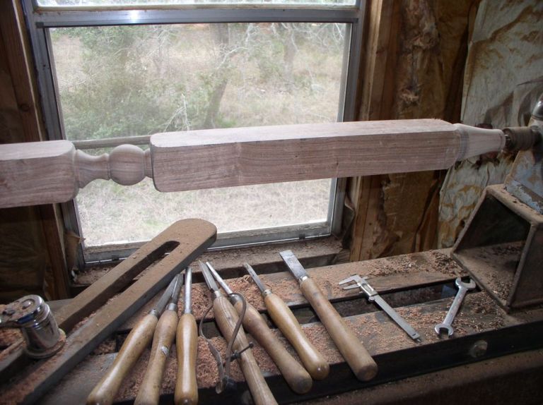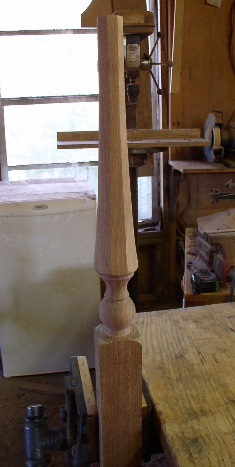 Here is a completed octagonal tapered post awaiting an ebony finial that will be attached to its top.