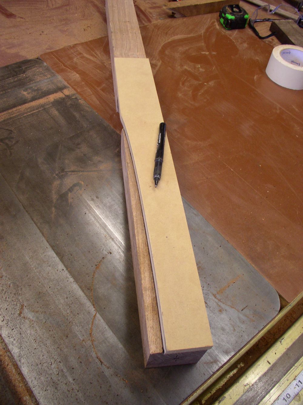 Next I use a pattern to lay out curved tapers on one face of each bedpost.