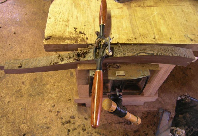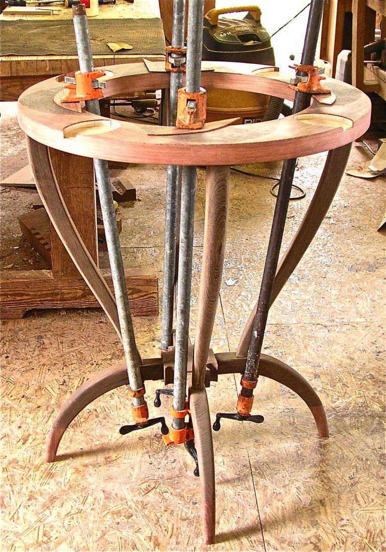As I play with parts and shapes and curves and proportions, something I like will eventually emerge, but it is usually hard work for me, and I can’t seem to get anywhere with design and CAD programs on the computer. It’s not that I want to be old fashioned, but that tactile, visceral experience of actually drawing on paper is how I beget my designs. For me the handmade piece begins with the handmade drawing.When I was happy with the design, I began to build. All of the legs on the globe stand were cleaned up with a spoke shave.