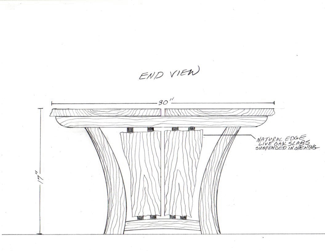 “Yes, certainly”, I replied, but after visiting the Urban Hardwoods website I knew I wanted to design a table that had much more than a pre-made metal base or pedestals of plain wood slabs; and this is my critique of so many live edge tables. They have beautiful tops with unimaginative or prefab bases. Some will say that it is about the beauty of the wood and the base should not compete with the top, but I don’t believe that fine design ever competes with nice materials; it only enhances them.