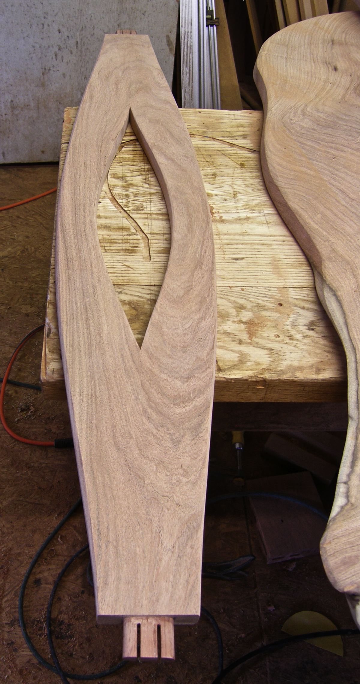 Anyway, I did find some lovely material, a pair of book-matched mesquite slabs that I knew would make a striking top with live edges.
