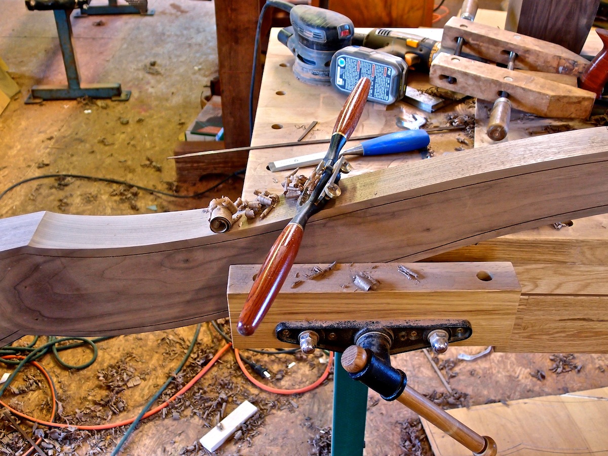 Usually when designing a piece of furniture, some accommodation is made to manufacturing processes, tooling, and efficiency. Such accommodation is done for streamlining construction and profitability. Being the impractical craftsman that I am, I took the opposite approach with this sleigh bed. All processes were made to serve the design, resulting in one of the most challenging pieces I have made.